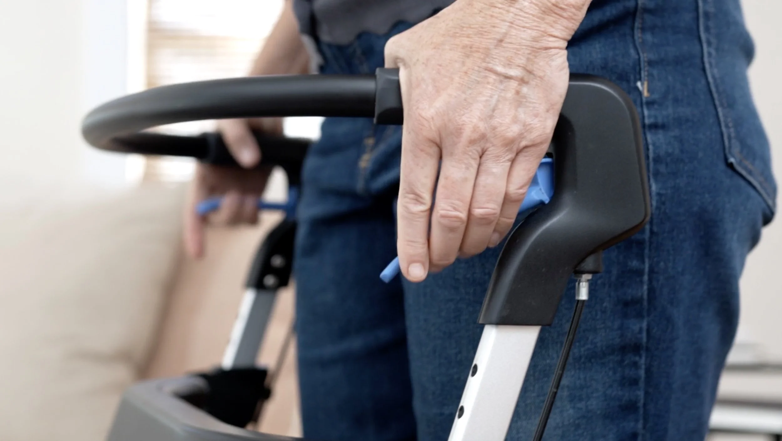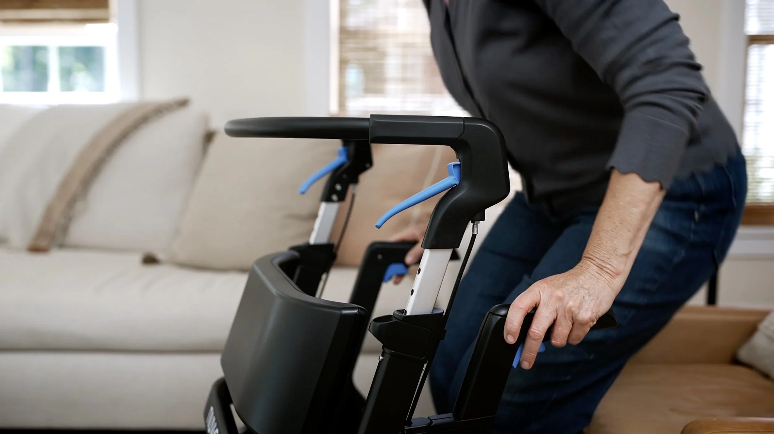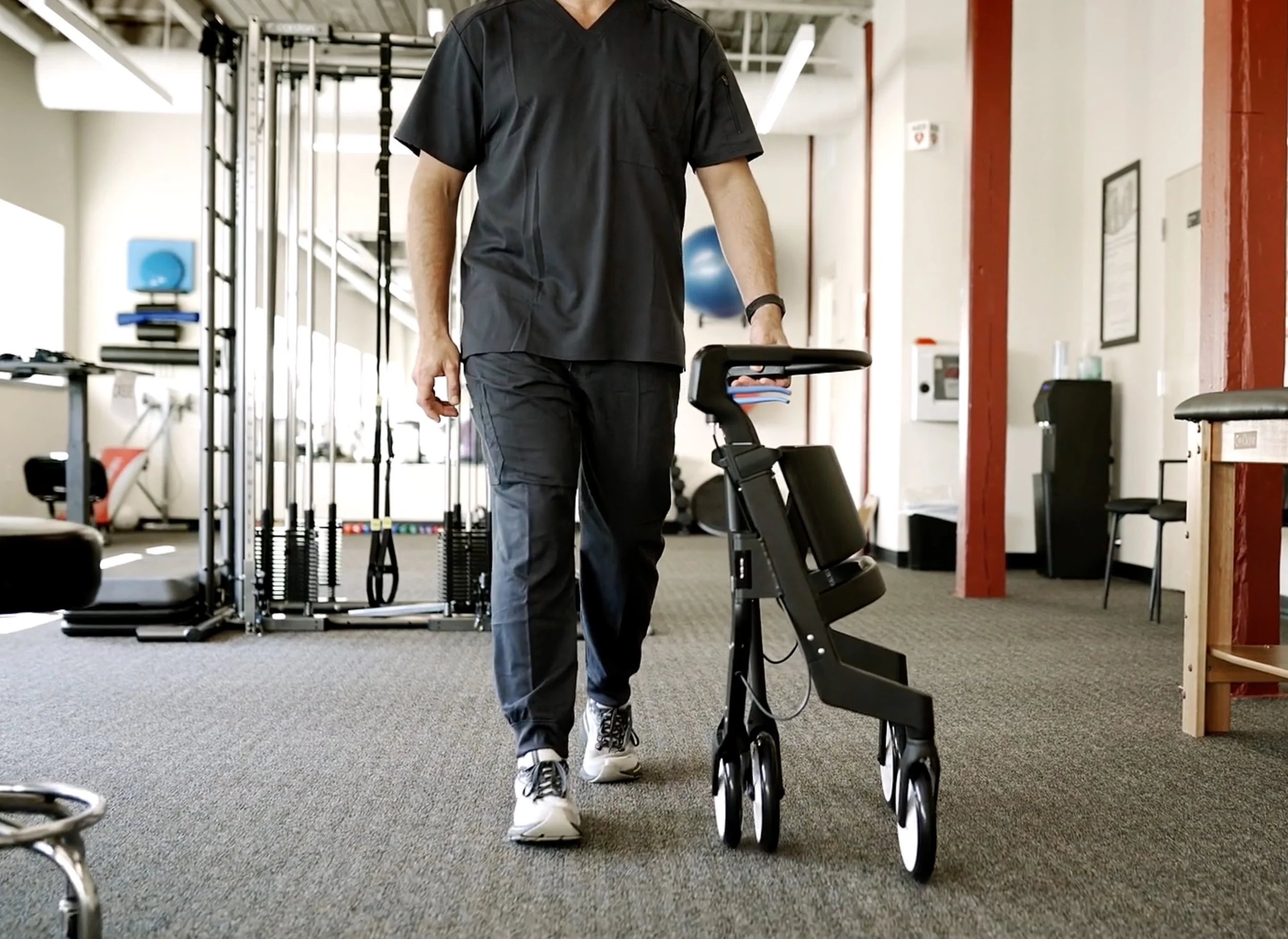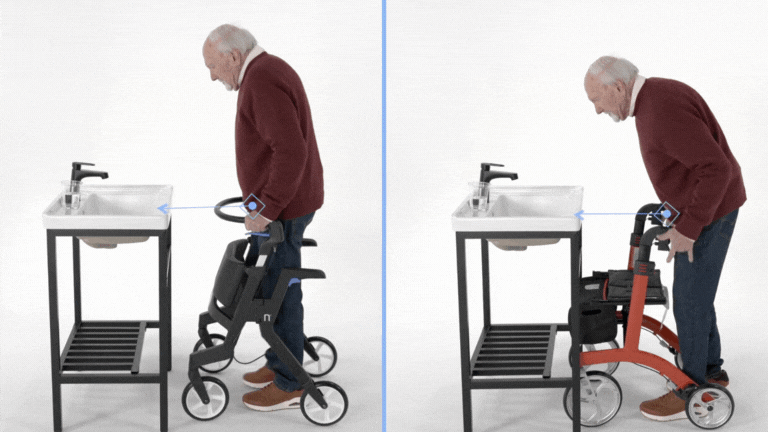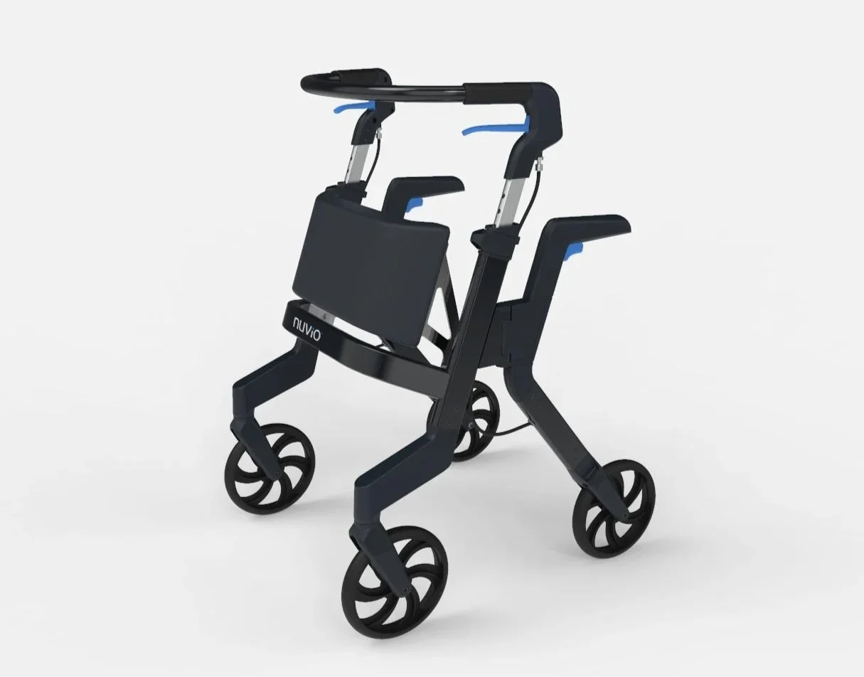 The Nuvio One was born from a clinical frustration: After years of watching patients struggle with equipment that hindered their recovery, Physical Therapist Dr. Matt Cumella realized that traditional rollators were fundamentally flawed. Standard X-frame designs force users to walk behind the device, resulting in a hunched gait and a physical barrier to everyday tasks.