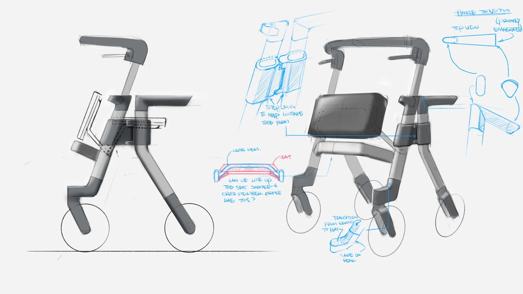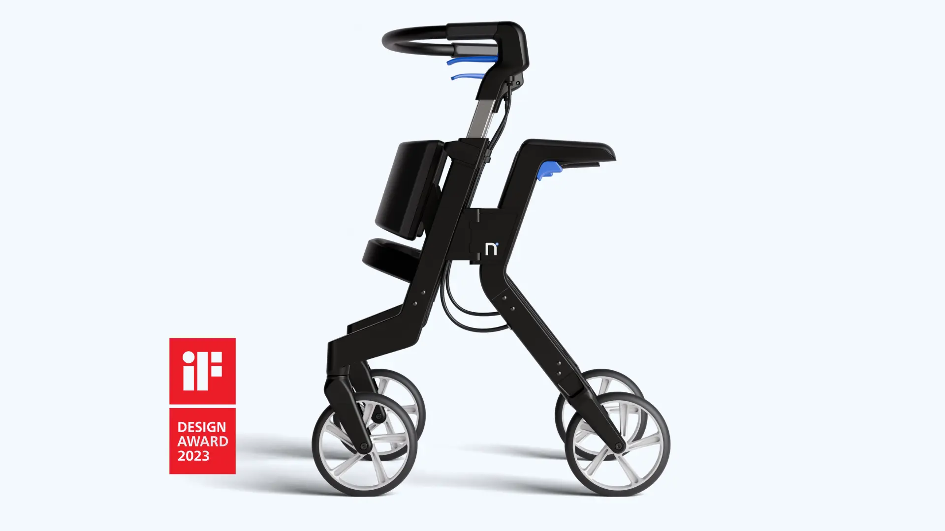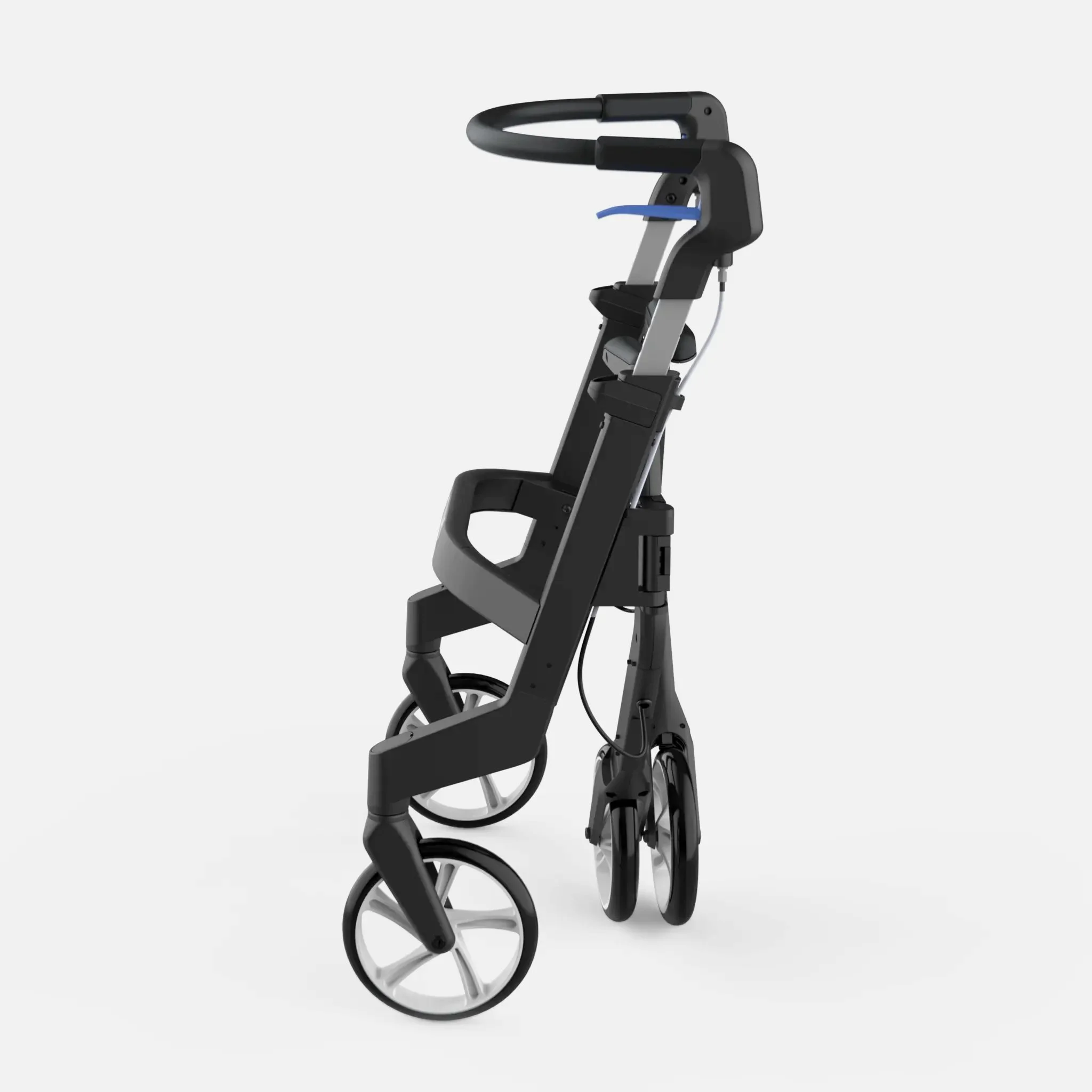 The flat tubing and angled silhouette shift the design language away from the stigma of a medical aid and toward a modern, high-performance device - a tool built for the person, not the condition.